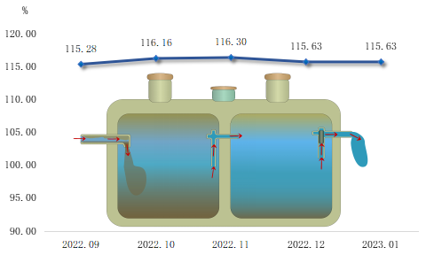 2023年1月,由于春节期间,制造业企业停工停产,复材原材料成交暂缓,因此,原料价格维持稳定。本期,复材原料价格指数收报115.63点,与上期一致。复材原料主要包含基料和增强材料两个大类,1月,两个大类原料价格指数运行情况如下图所示: