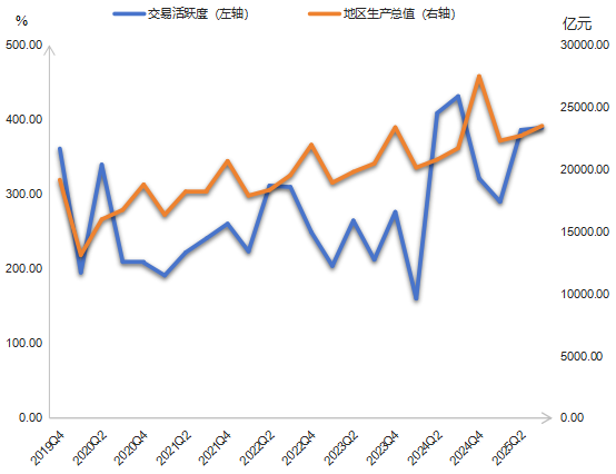 图8 浙江省地区生产总值与交易活跃度相关性分析