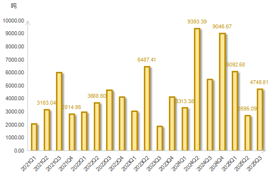 2025年三季度,浙江省排污权四项污染物成交量合计为4748.81吨,环比增长76.20%,同比下降13.34%。