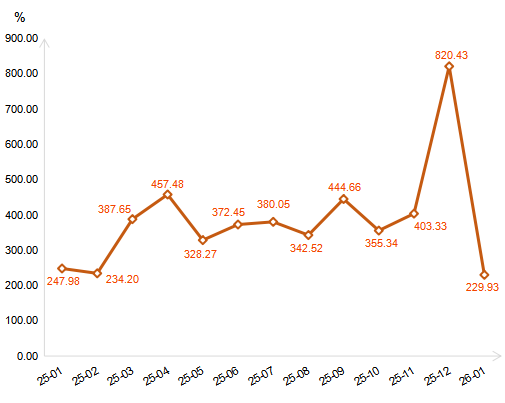 2026年1月,浙江省排污权交易活跃度指数收报于229.93点,环比下降71.97%,同比下降7.28%。