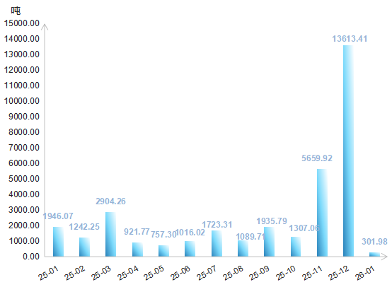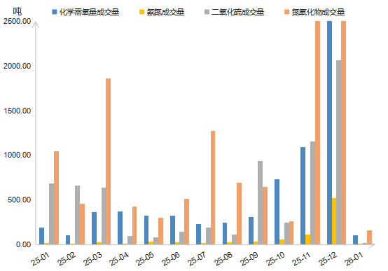 2026年1月,四项排污权总成交量环比、同比均大幅下降,成交量为301.98吨,环比下降97.78%,同比下降84.48%。