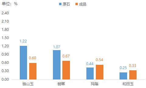 图二 玉雕原石、成品细分品价格指数8环比涨幅