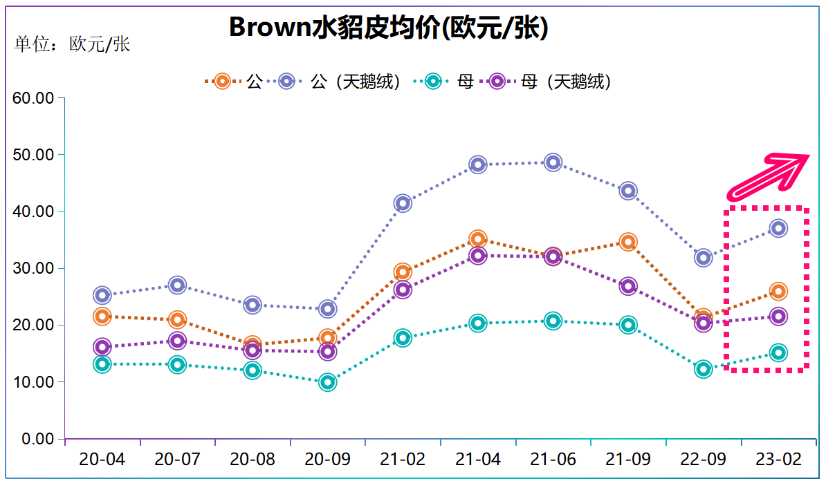 图三 拍卖会近几期Brown水貂皮均价走势图