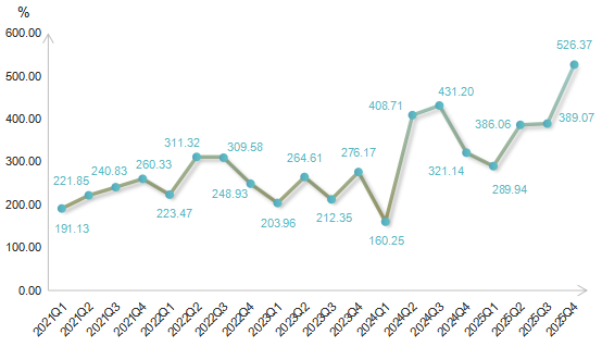 2025年四季度,浙江省排污权交易活跃度指数收于526.37点,环比上升35.29%,同比上升63.91%。
