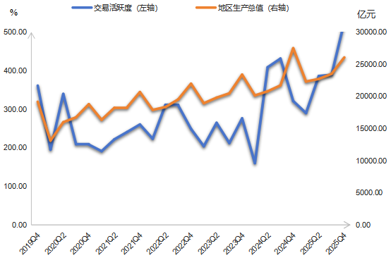 图8 浙江省地区生产总值与交易活跃度相关性分析
